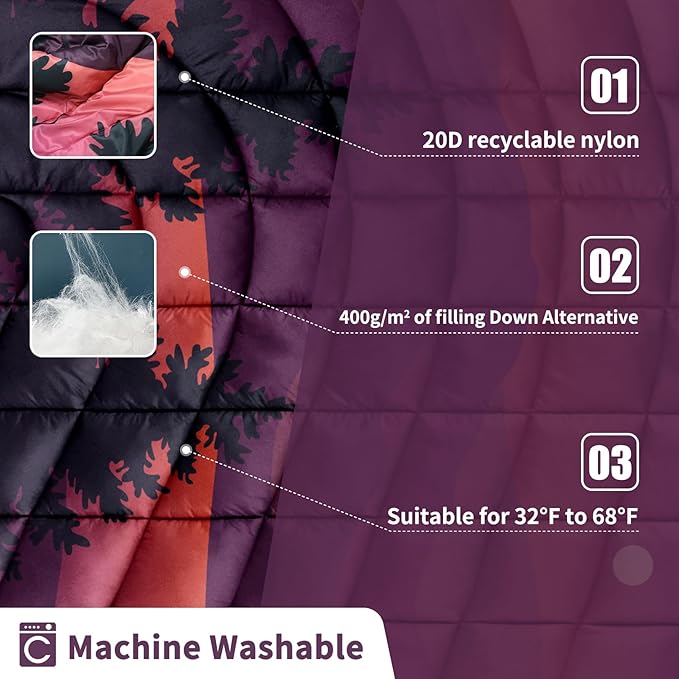 • LIGHTWEIGHT AND PACKABLE: The camping blanket measures 52*75 inches and measures 9*14 inches when packed. Weighing only 2.3 pounds, the products you buy include a camping blanket and a portable storage bag. This will be the ideal blanket for your outdoor, hiking and camping adventures.