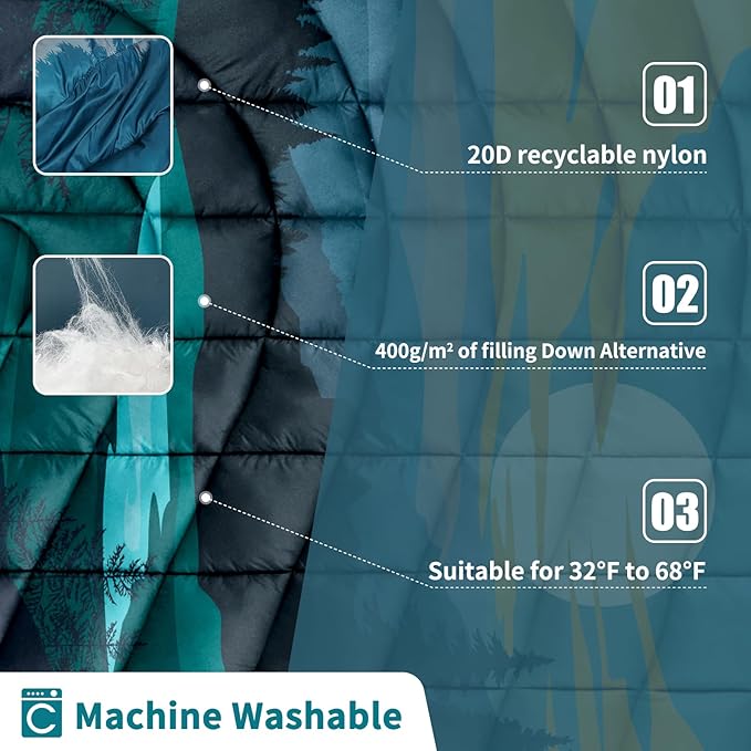 • LIGHTWEIGHT AND PACKABLE: The camping blanket measures 52*75 inches and measures 9*14 inches when packed. Weighing only 2.3 pounds, the products you buy include a camping blanket and a portable storage bag. This will be the ideal blanket for your outdoor, hiking and camping adventures.
