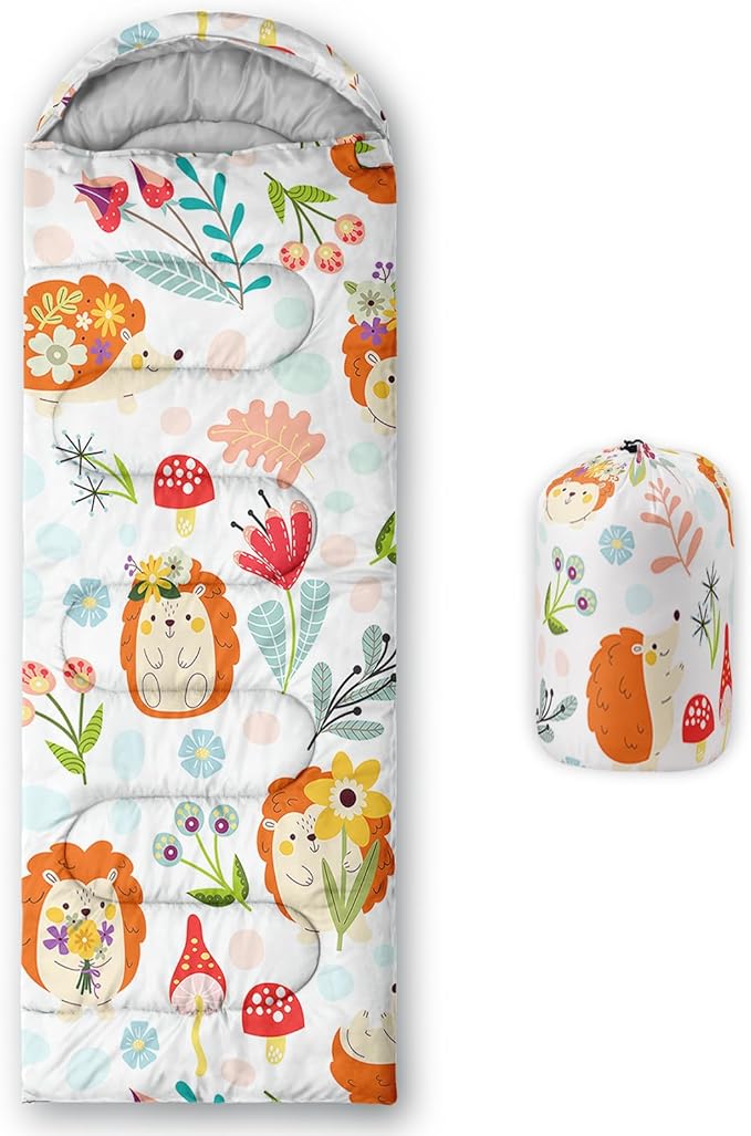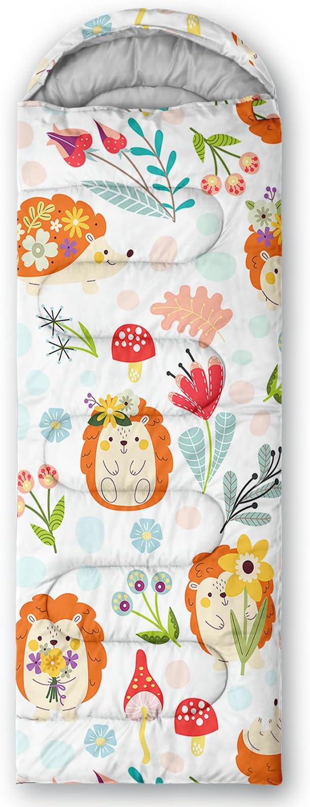 • Applicable For 3 Seasons: Our mushroom hedgehog sleeping bag can be used in temperatures ranging from 32°F-77°F Except for the cold winter,sleeping bag have weatherproof to prevent from dampness,Size is 31 x 90 inches