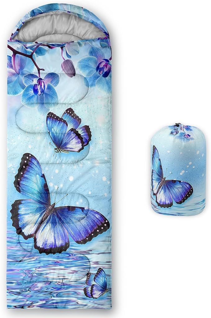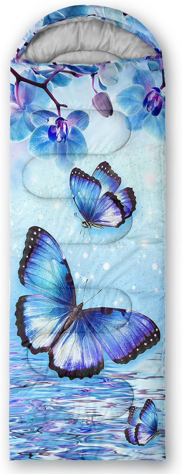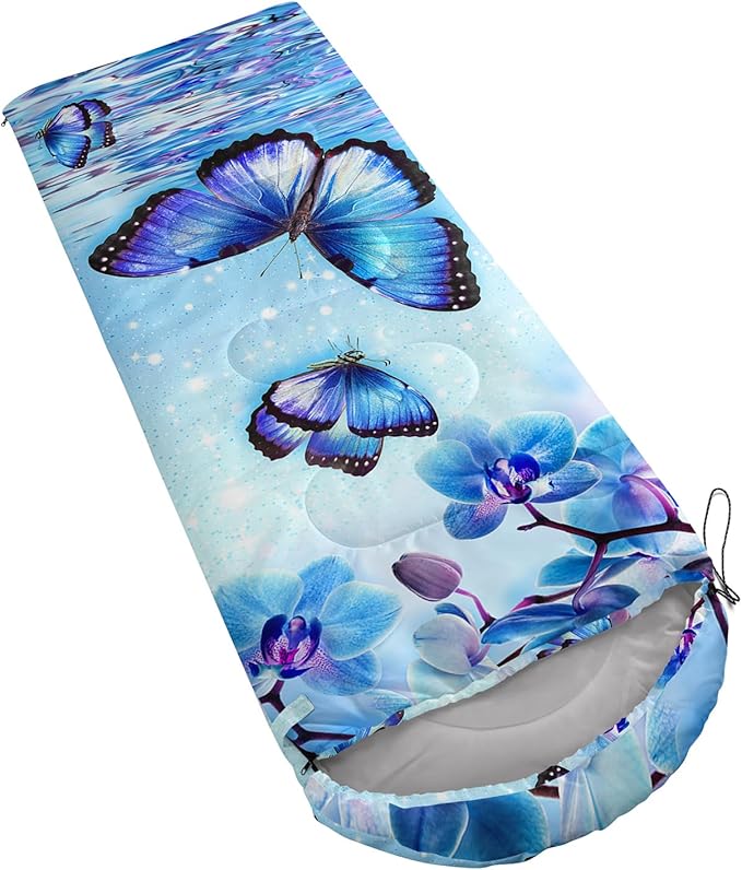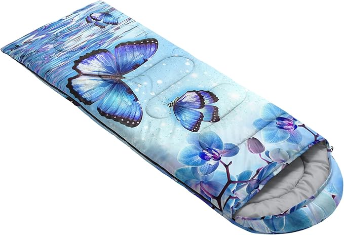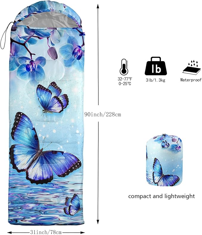 • Applicable For 3 Seasons: Our blue ripple butterfly sleeping bag can be used in temperatures ranging from 32°F-77°F Except for the cold winter,sleeping bag have weatherproof to prevent from dampness,Size is 31 x 90 inches