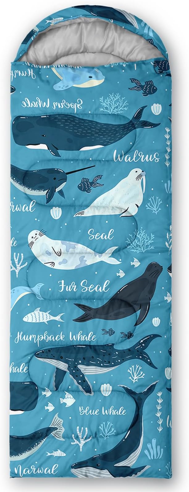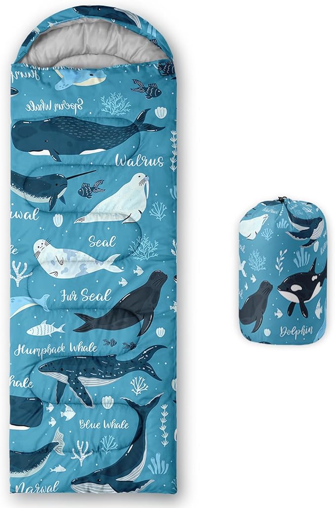 • 【Fits For 3 Seasons】: Size - 31 by 90 inches (W x D). Our Marine life sleeping bag can be used in 3 seasons with a design temperature of 32℉-77℉(0℃-25℃)