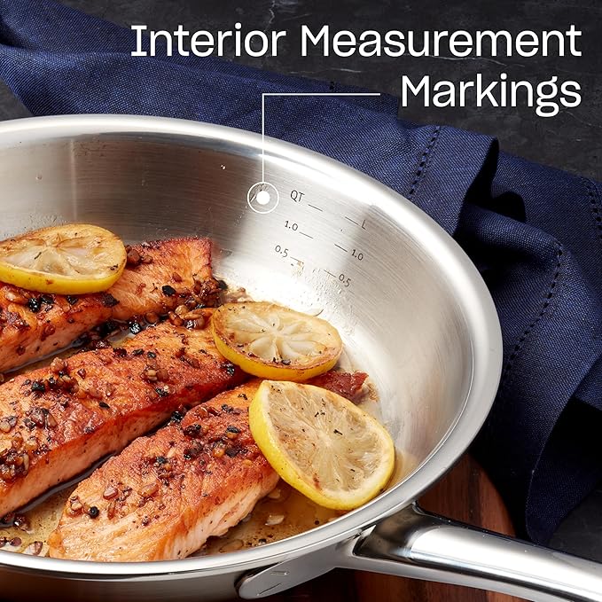 • 5-LAYER BONDED CONSTRUCTION: Premium 18/10 stainless steel with two aluminum layers for superior heat conductivity and a stainless steel core for strength. 3mm walls heat evenly, resist warping, and provide precise cooking control.