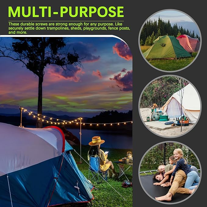 • 【WIDE USE】 - The ground anchor is suitable for objects that are easily affected by wind and rain, the metal tent stack can not only fix tents, canopies, ground covers, garden nets, tarps or landscape decorations, but also ideal for trampolines, play facilities, swings for children choose. Even more so for slides, campers, fences and fence posts, trees, vertical hammock frames, and more.