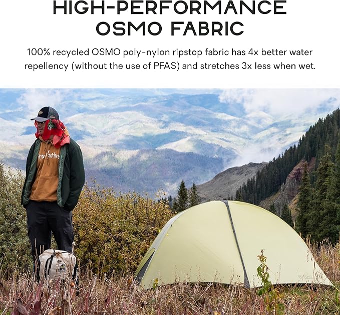 • High-performance, proprietary OSMO poly-nylon ripstop fabric has 4x better water repellency and 3x less stretch when wet. OSMO fabric is made from 100% recycled yarns that are PFAS-free and meet flame retardancy standards without the use of added chemicals.