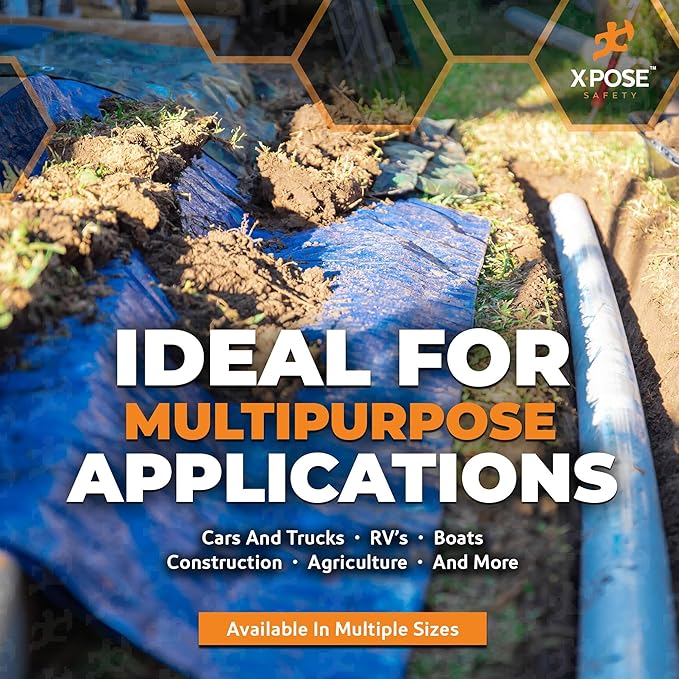 • DEPENDABLE FOR EVERY DAY - At 7 mil thick, this tarp offers a combination of durability and convenience. It's suitable for covering equipment, vehicles, or as a temporary fix for unexpected situations - reliable and dependable under many conditions and uses. FINISHED SIZE: Xpose Safety Premium Tarps Run True to Size.