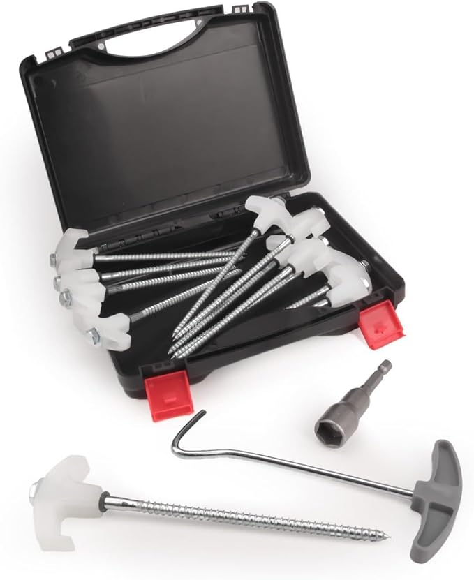 • Include: 12 tent stakes, 1 stake puller, 1 13mm hex drill bit, 1 carrying case for convenient carrying and storage