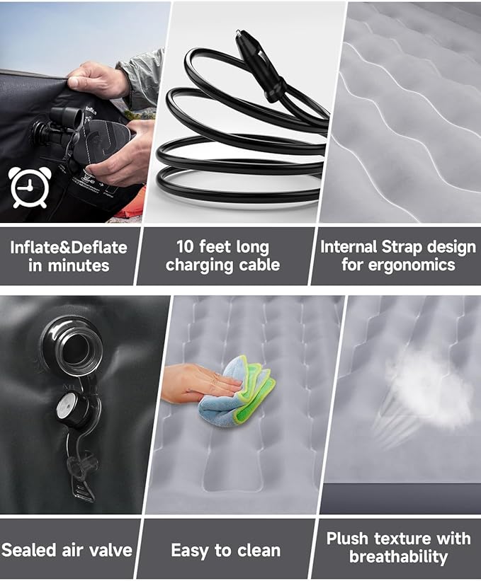 • Versatile for Any Setting: This air mattress adapts to various scenarios, whether as a car bed, SUV mattress, or backseat sleeper. Beyond vehicles, it’s perfect for guest rooms, hotels, tents, and camping trips, offering a comfortable rest anytime, anywhere to suit your needs.