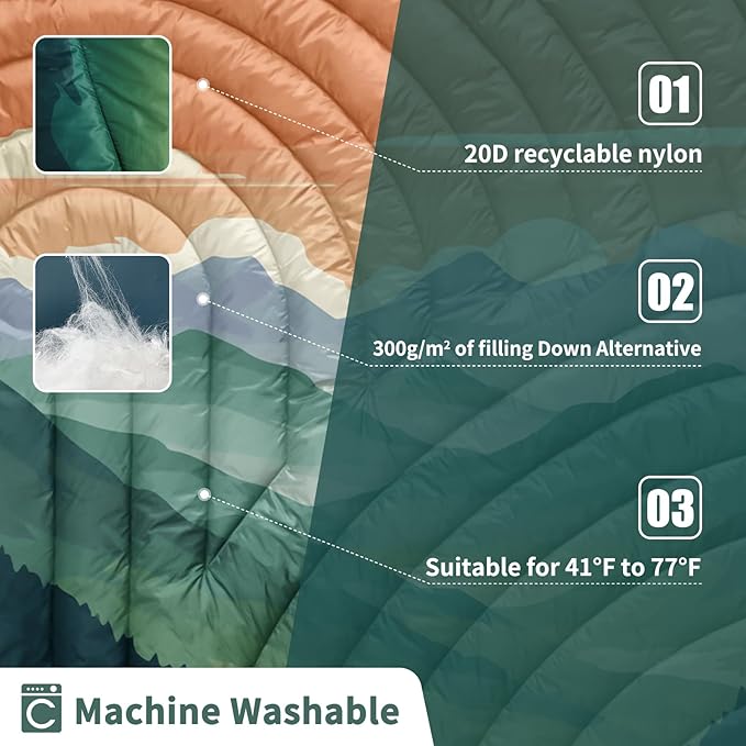 • LIGHTWEIGHT AND PACKABLE: The camping blanket measures 52*75 inches and measures 8*12 inches when packed. Weighing only 2 pounds, the products you buy include a camping blanket and a portable storage bag. This will be the ideal blanket for your outdoor, hiking and camping adventures.