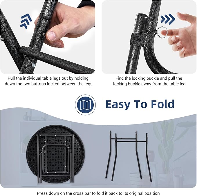 • PREMIUM DESIGN: This bar height folding table has an elegant appearance. Based on the design of locking legs and non-slip rubber feet, it adds the advantage of detachable legs. While having good stability, it is convenient for storage and movement