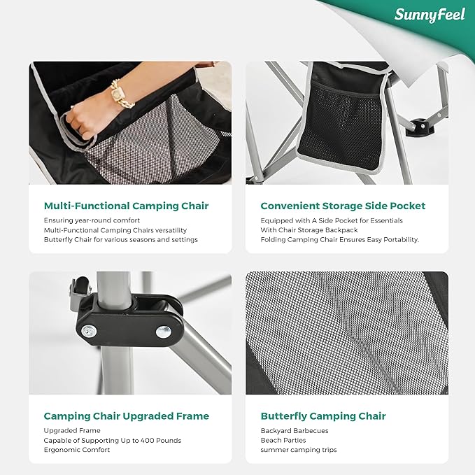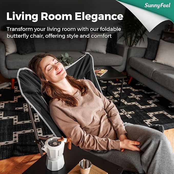 SUNNYFEEL Oversized Camping Folding Chair for Outdoor Camp with Cup Holders & Carry Bag, Versatile Indoor-Outdoor Comfy Butterfly Chair for Adults, Beach, Picnic, Hiking, Living Room