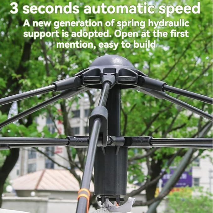 • 【ONE KEY UNDERSTANDING】The tent adopts a new generation of spring-loaded hydraulic bracket technology, which can be unfolded instantly in 3 seconds with just a gentle lift, bidding farewell to the tedious process of setting up. Whether it's a family trip, park leisure or wild adventure, you can instantly enjoy the infinite fun of camping, making your outdoor time more relaxing and enjoyable.