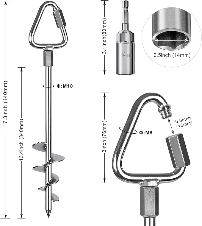• π‘Ήπ’†π’Žπ’π’—π’‚π’ƒπ’π’† 𝑹𝒐𝒑𝒆 π‘ͺπ’‚π’“π’‚π’ƒπ’Šπ’π’†π’“: These ground anchors screw in are reusable anchors without having to pull them out - simply unscrew the snap for ease of use.