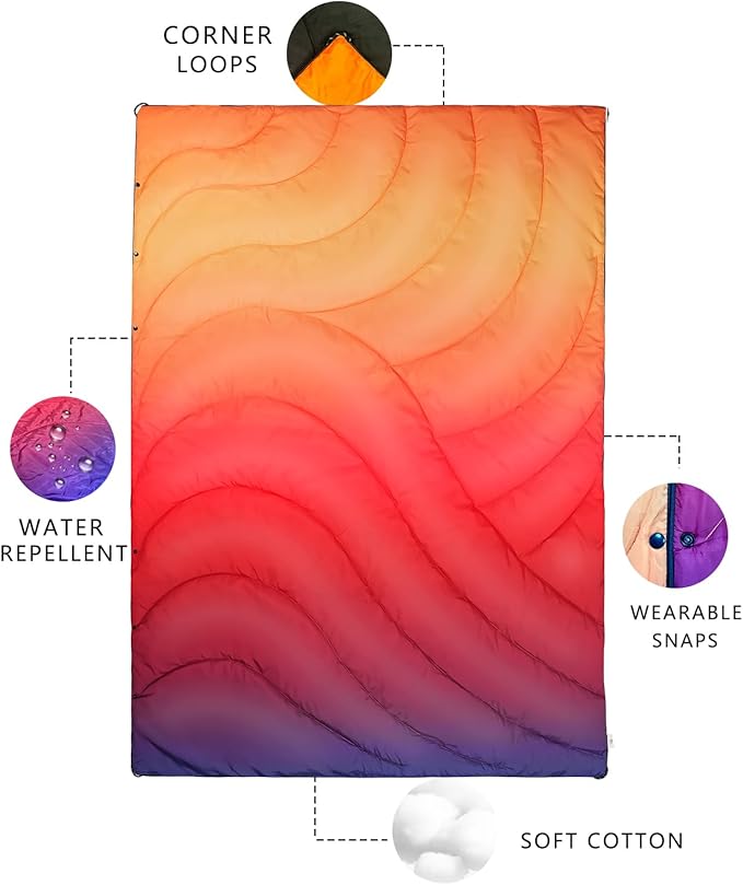 • 【Lightweight Portability】Our puffy camping blanket uses thickened cotton, giving it a larger volume compared to others, which highlights its genuine quality. Despite the thickness, cotton’s natural properties keep it lightweight. It provides warmth while remaining portable, suitable for temperatures from 32°F to 50°F. With a detachable hood and portable design, it’s easy to carry. Weighing as much as a water bottle, it offers full-body protection and is ideal for camping enthusiasts.