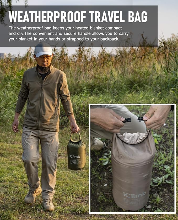 iClimb Heated Camping Blanket with Hood and Battery Pack (Green)
