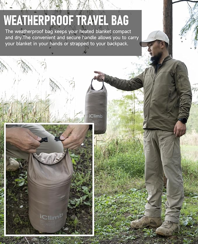 iClimb Heated Camping Blanket with Hood and Battery Pack (Khaki)