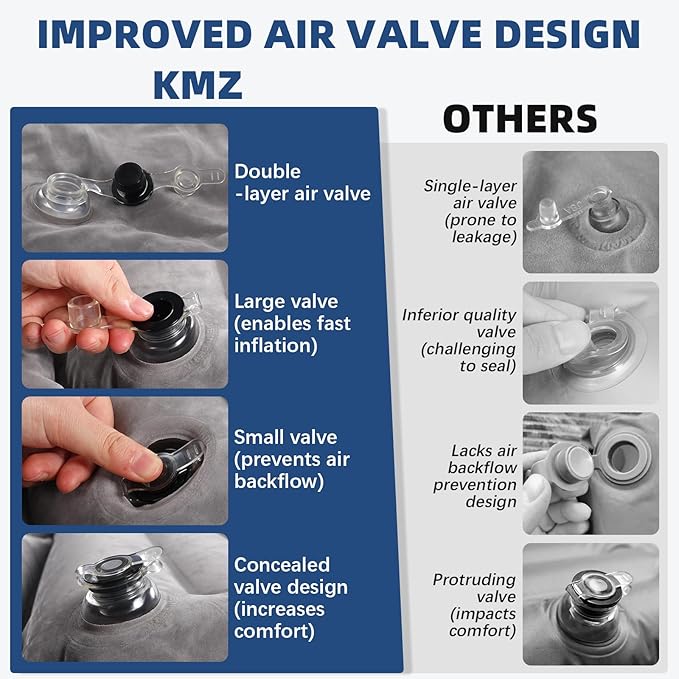 • Soft & Plush Double-Sided Flocking – The KMZ SUV air mattress features a soft, velvety double-sided flocking surface, offering a luxurious, plush feel on both sides. Enjoy ultimate comfort for a restful sleep during travel, camping, or outdoor