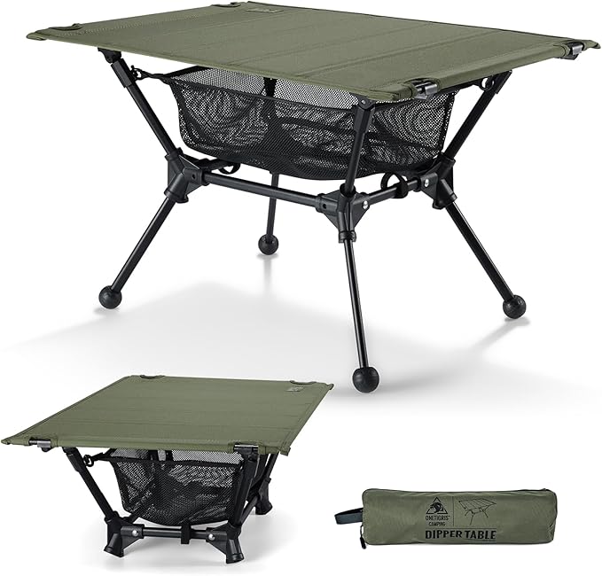 ONETIGRIS Dipper Camping Table, Lightweight Portable Folding Table with Mesh Storage Net, High/Low Options, Ideal for Camping, Hiking, Tailgating, Beach, Picnic, Travel, Backyard