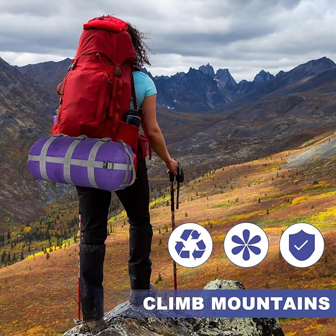 • Quality Material: our sleeping bag stuff sack adopts quality 210D polyester that is both lightweight and waterproof; It is a reliable storage solution for everything from camping gear to daily essentials, as it is designed to keep your belongings organized and safe