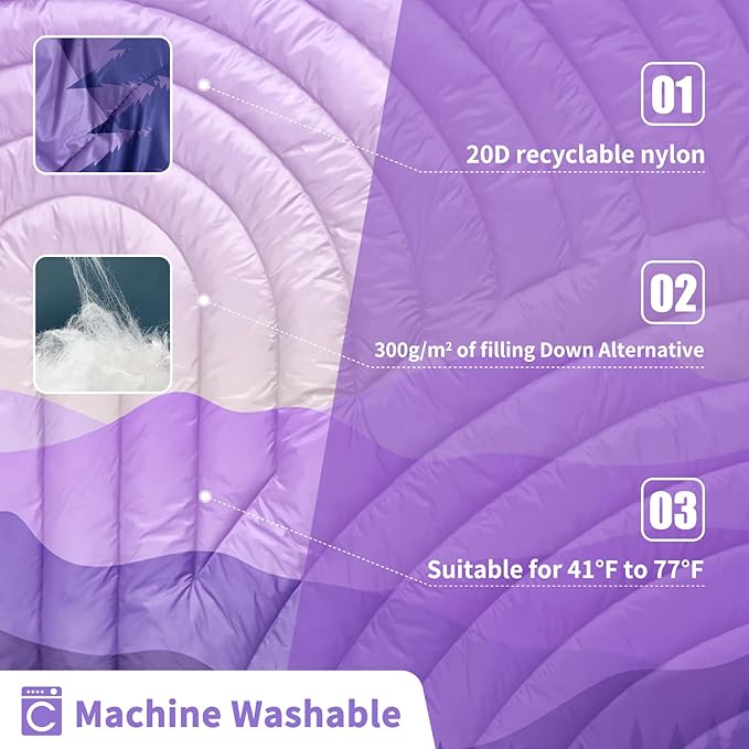 Camping Blanket,Lightweight Down Alternative Puffy Blanket Packable Outdoor Blanket for Camping,Traveling, Stadium, Hiking, Picnics