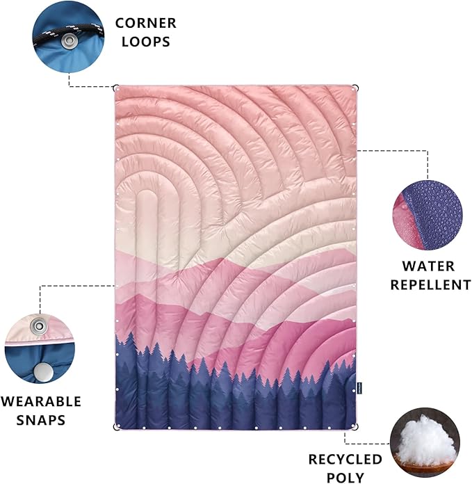 Lightweight Down Alternative Puffy Blanket, Packable Outdoor Blanket for Camping, Traveling, Stadium, Hiking, Picnics