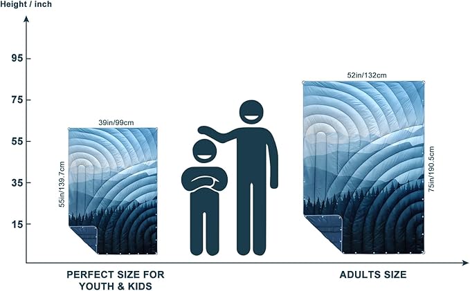 • LIGHTWEIGHT AND PACKABLE: The camping blanket measures 39*55 inches and measures 6*9 inches when packed. Weighing only 1.2 pounds, the products you buy include a camping blanket and a portable storage bag. This will be the ideal blanket for your outdoor, hiking and camping adventures.