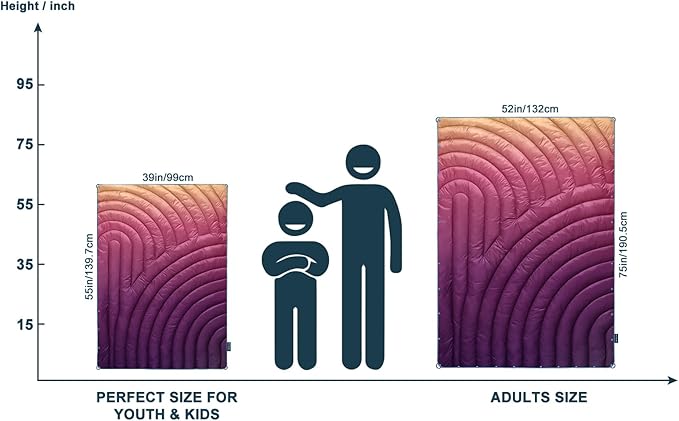 • LIGHTWEIGHT AND PACKABLE: The camping blanket measures 39*55 inches and measures 6*9 inches when packed. Weighing only 1.2 pounds, the products you buy include a camping blanket and a portable storage bag. This will be the ideal blanket for your outdoor, hiking and camping adventures.
