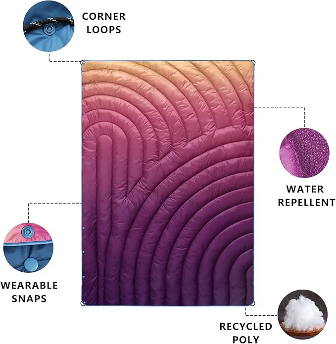 • MULTIFUNCTIONAL BLANKET: This blanket has multiple pairs of buttons and can be used as a comforter, rug, shawl, or sleeping bag. You can also put two blankets together to make a double sleeping bag.Perfect for camping, backpacking, hiking, climbing, travel, relaxation, picnics, beach trips, sports activities, airplane trips, and other outdoor activities.