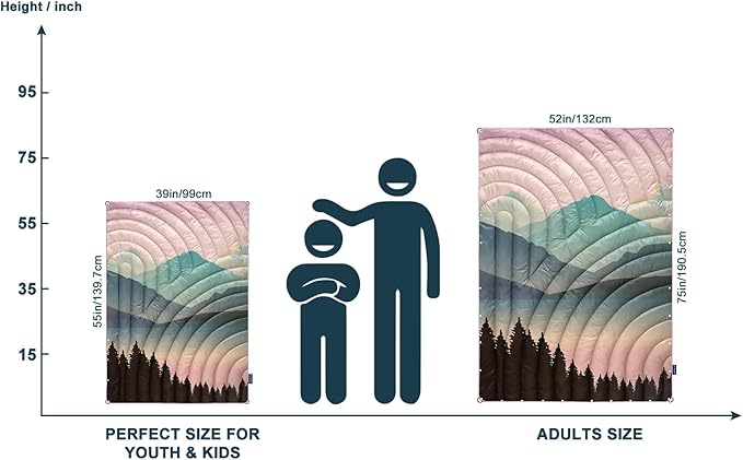 • LIGHTWEIGHT AND PACKABLE: The camping blanket measures 39*55 inches and measures 6*9 inches when packed. Weighing only 1.2 pounds, the products you buy include a camping blanket and a portable storage bag. This will be the ideal blanket for your outdoor, hiking and camping adventures.