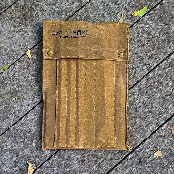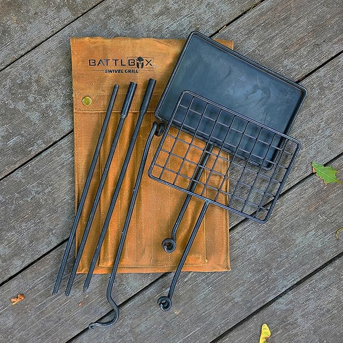 BATTLBOX Bushcraft Grill Set, Steel Campfire Cooking Grate Swivel Grill For Outdoor BBQ Open Fire, Packable Campfire Cook Set, Heavy Duty Open Fire Swivel Camping Cooktop, Canvas Bag