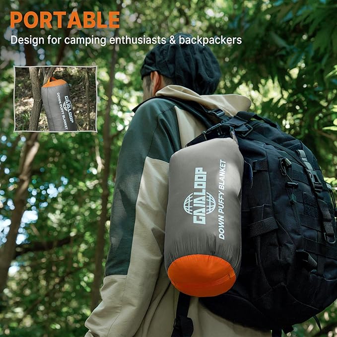 • 【80% Duck Down Filling: Soft & Comfortable】GAIALOOP Down Puffy Blanket is filled with 80% gray duck down and 20% feather using compartmentalized filling technology. We fill every cell on the down blanket as evenly as possible to make sure each cell is fluffy, soft, and comfortable.