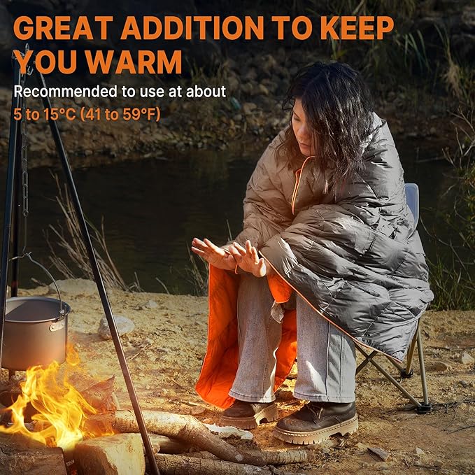 • 【Recommended Usage】Ideal as a lightweight, packable down camping blanket for temps above 5°C/41°F. Perfect for camping, travel, or as a sleeping bag liner for extra warmth.