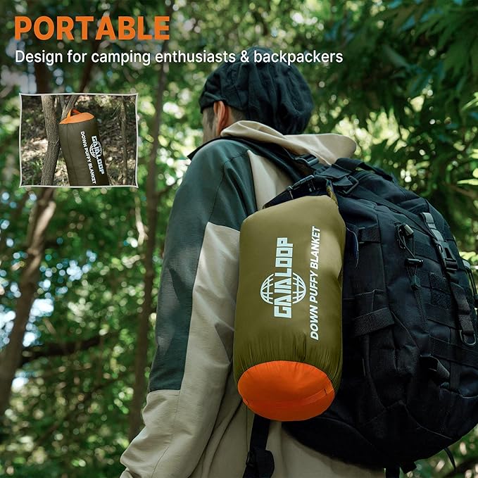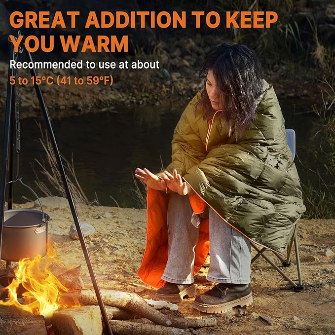 • 【Recommended Usage】Ideal as a lightweight, packable down camping blanket for temps above 5°C/41°F. Perfect for camping, travel, or as a sleeping bag liner for extra warmth.