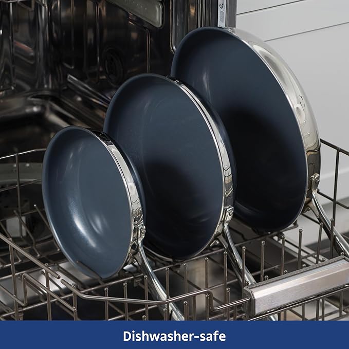 • Durable Construction: Tri-ply clad stainless steel with an aluminum core ensures even heat distribution for precise cooking on gas, electric, or induction stovetops.