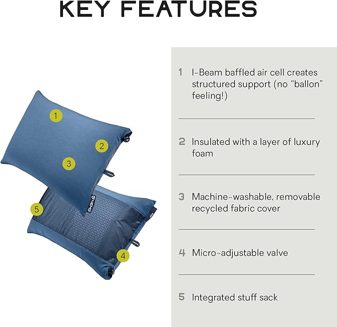 • Thick luxury foam provides a soft and yielding feel, unlike classic inflatable camp pillows.