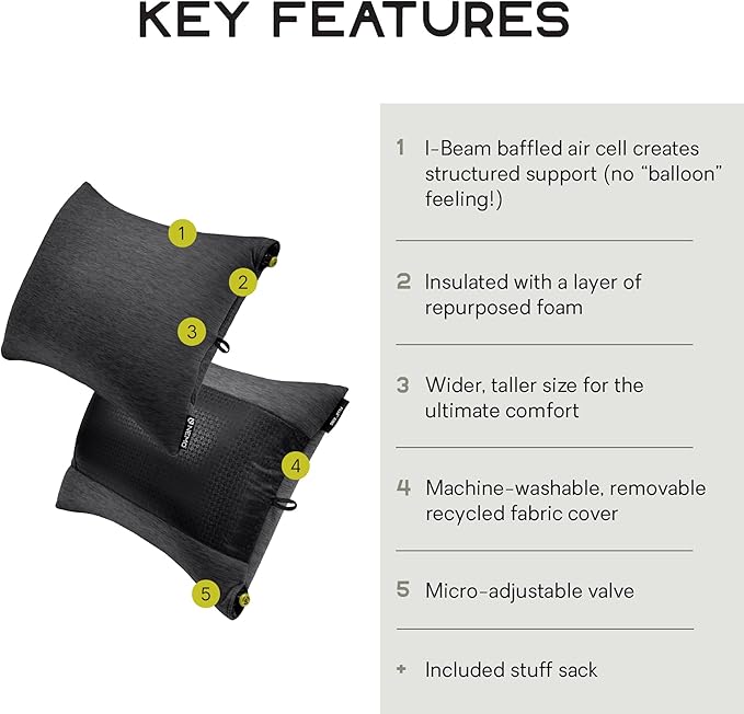 NEMO Equipment Fillo King Luxury Camping Pillow - Black Pearl/Birch Bud - One Size