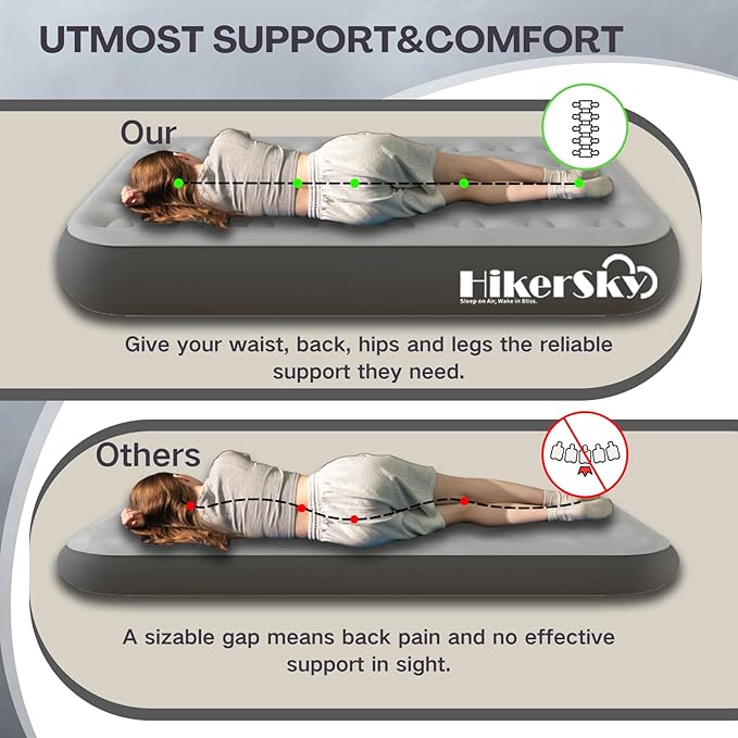 • INTERNAL COIL BEAM STRUCTURE: This product adopts the internal coil beam structure to make the inflatable mattress more airtight and supportive, made of waterproof PVC material with no odor, ergonomically designed to have air columns to support a good night's sleep all night long.