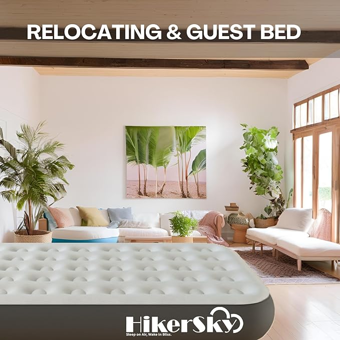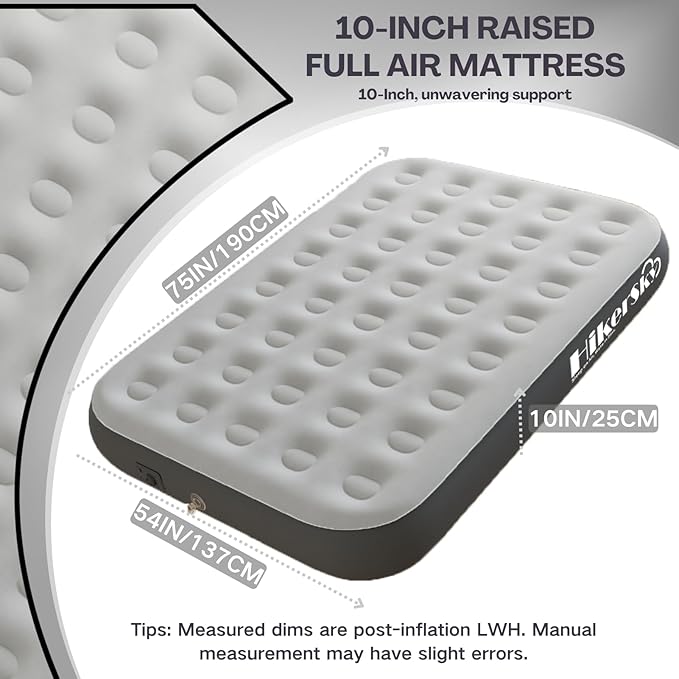 • SOFT THIN VELVET: Full 10-inch grey air mattress with built in pump has a soft and comfortable thin velvet surface on the front side of the sleeping layer, which increases sleeping friction and comfort and effectively prevents slipping, and gives you a comfortable sleep.