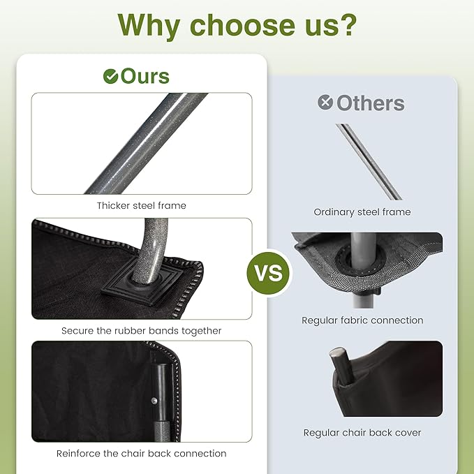 • ▲Larger Size More Spacious and Comfortable: Oversized camping chair provides enough space for lounging. Fully cushioned seat and back make you feel comfortable