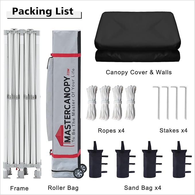 MASTERCANOPY 10x20 Heavy Duty Pop Up Commercial Instant Canopy with Sidewalls(10x20 Black)
