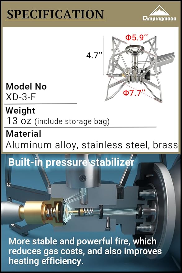 • 【Canvas Storage Bag】This CAMPINGMOON butane camping stove XD-3F is lightweight & foldable & compact. You can fold this butane stove into attached storage bag.