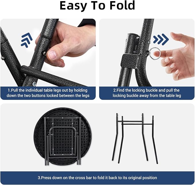 • SUITABLE SIZE: Our hightop table's unfolded dimension is 27.5" L x 27.5" W x 43.3" H; folded dimension is 27.5" L x 27.5" D; weighs 13.56lbs. The foldable and detachable portable design makes this round cocktail table easy to store and transport