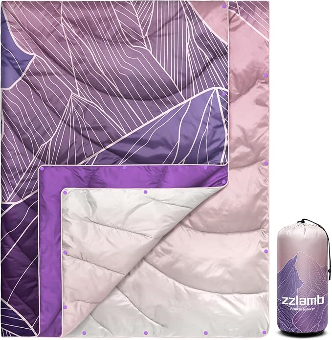 zzlamb Camping Blanket, Outdoor Lightweight Travel Blanket Puffy Portable Down Alternative, Windproof Warm Cloak with Snaps, Cozy Quilt Backpacking Picnic RV Plane Car Hammock Beach Climbing