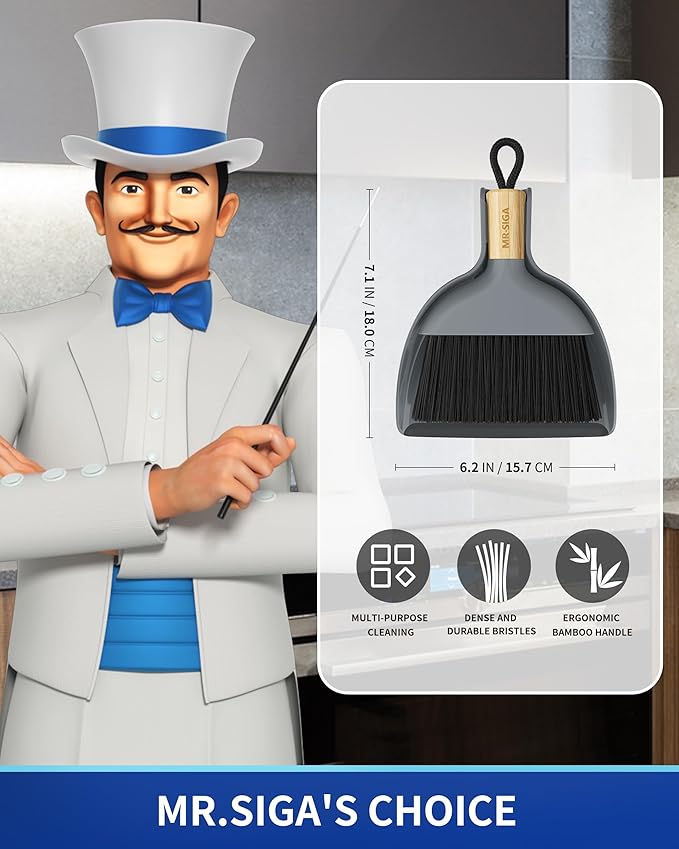 • MR.SIGA mini handheld dustpan and brush set has a natural bamboo handle, which is more environmentally friendly and comfortable to hold. Measures 7.1 " x 6.2 "
