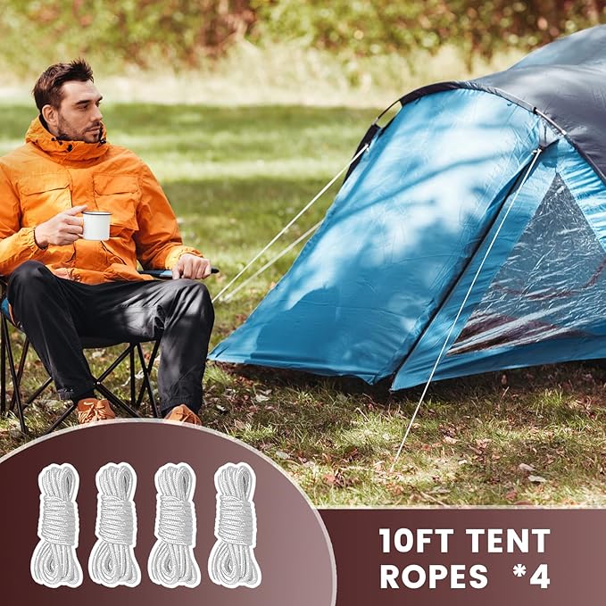 • Package Includes: Our set comes with a bonus of 12 pack heavy-duty tent stakes, 4*10ft ropes, 1 Hex Head Driver, 1 spikes puller, all of them are in a carrying storage box and making it easy to set up your tent in no time