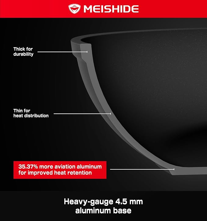 • Suitable for All Stoves: No More Cooktop Compatibility Issues - The fan-shaped high-magnetic aviation aluminium base heats 57.31% faster than regular pans (tested on gas, electric & induction cooktops). Oven & Dishwasher Safe: From stovetop to oven (up to 500°F), then toss in the dishwasher. Ideal for searing, baking, or reheating leftovers.