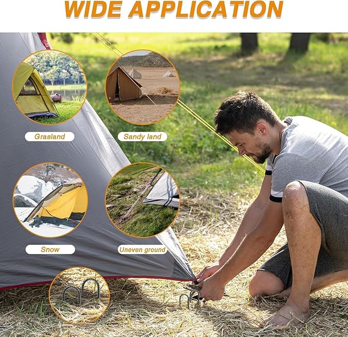 • WIDE USE - Ground stakes can be used to secure all kinds of tents, greenhouses, ground decorations, water pipes, anti-freeze fabrics, pet cages, and everything else you want to secure to the ground, suitable for all kinds of outdoor projects.