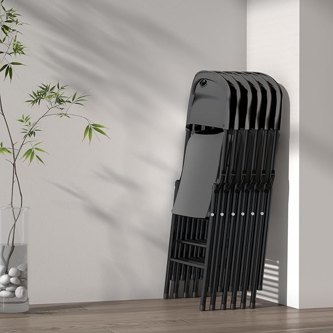 Nazhura 350 Weight Limit Heavy Duty Plastic Folding Chair with Reinfoced Steel Frame for Indoor and Outdoor, Wedding, Party, Restaurant, Meeting Room, Patio and Garden (Black, 4 Pack)