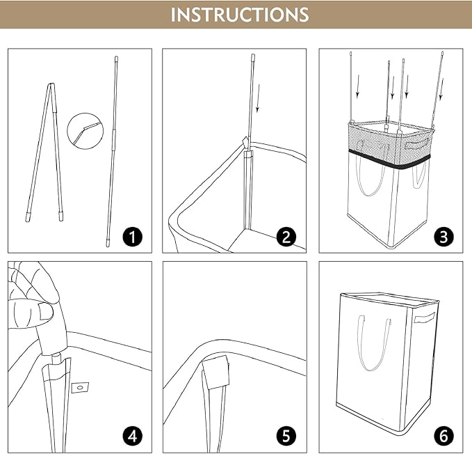 • STRUCTURE & MATERIAL - Metal frame on the top and 4 rods on the corners to shape the sturdy hamper, 600D oxford fabric with coating inside for mositureproof