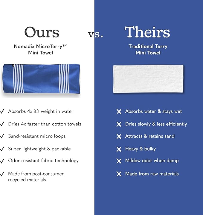 Nomadix Mini Towel - Perfect for Beach, Pool, Travel, Camping, Yoga - Made with Recycled Materials - Super Absorbent - Sand Resistant - Poolside Navy - 16x40