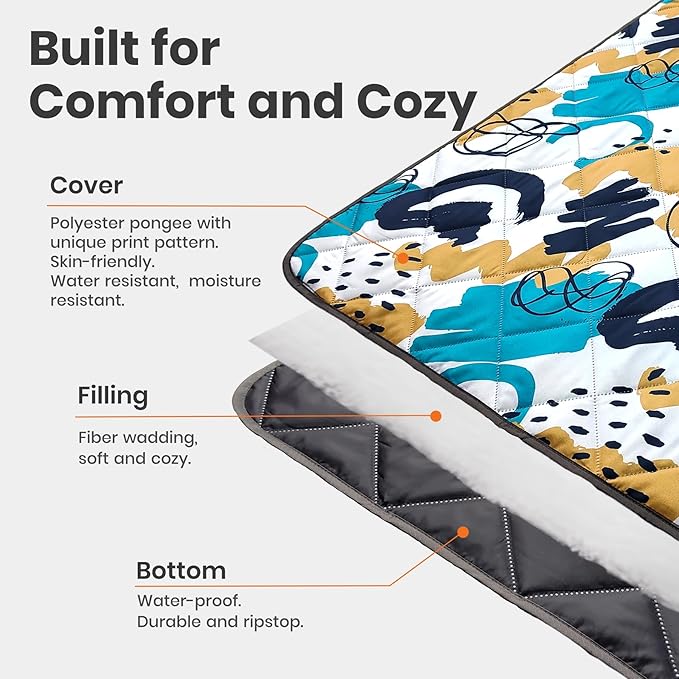 • DURABLE & COMFORTABLE - Engineered with a tear-resistant top layer and reinforced ripstop backing, this lightweight yet sturdy blanket withstands your outdoor use. The triple-layer construction with fiberfill padding delivers cushioned comfort while blocking ground moisture to keep you dry.
